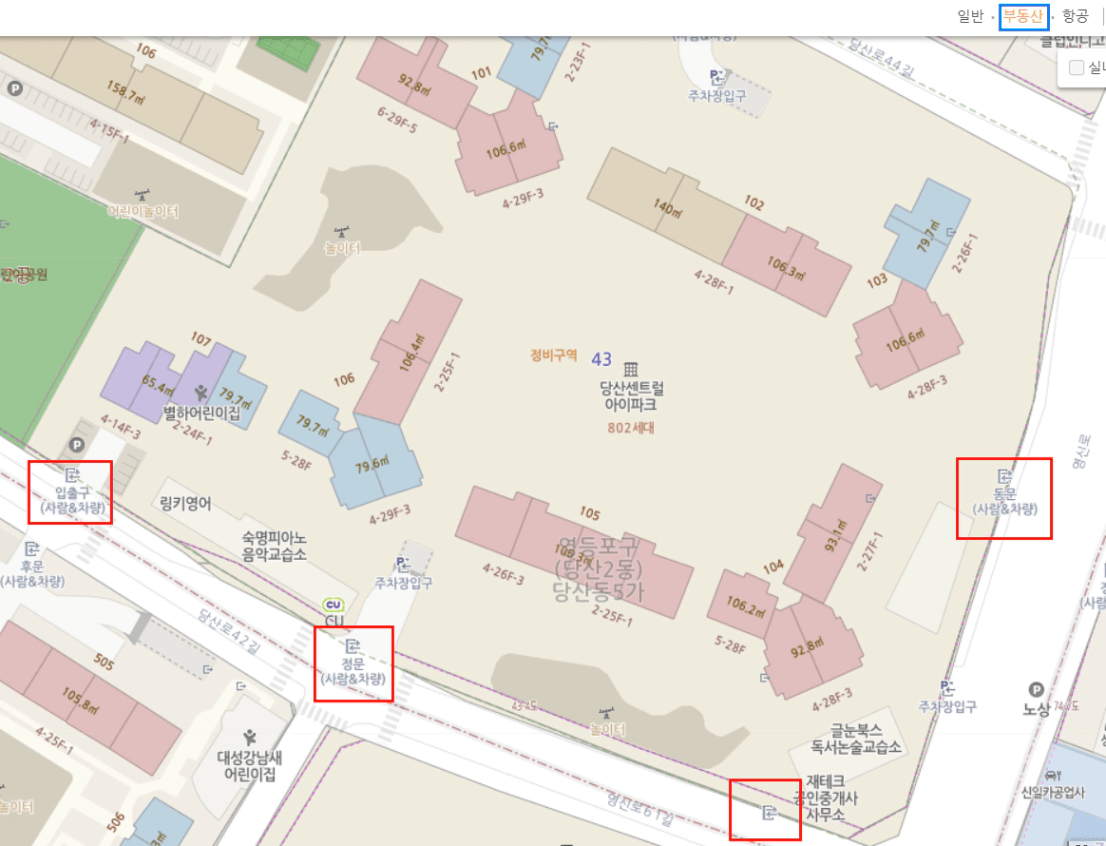 당산센트럴아이파크는 빨강색이 많이 보이는데
