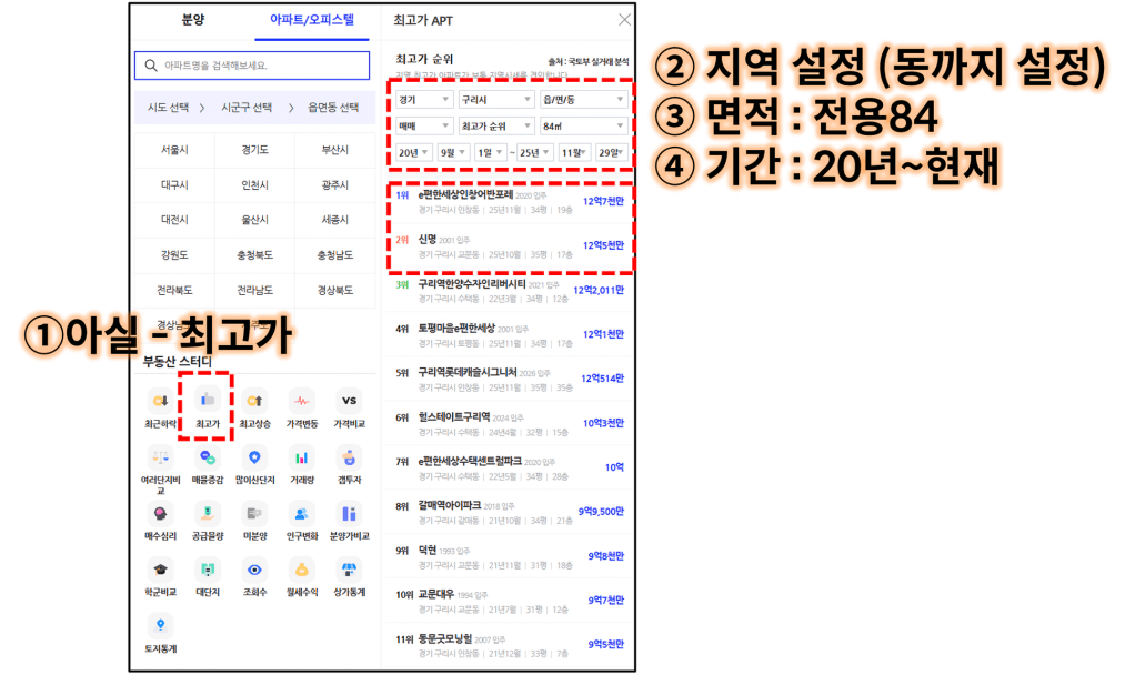 이때는 ‘아실’의 ‘최고가 순위’ 단지를
