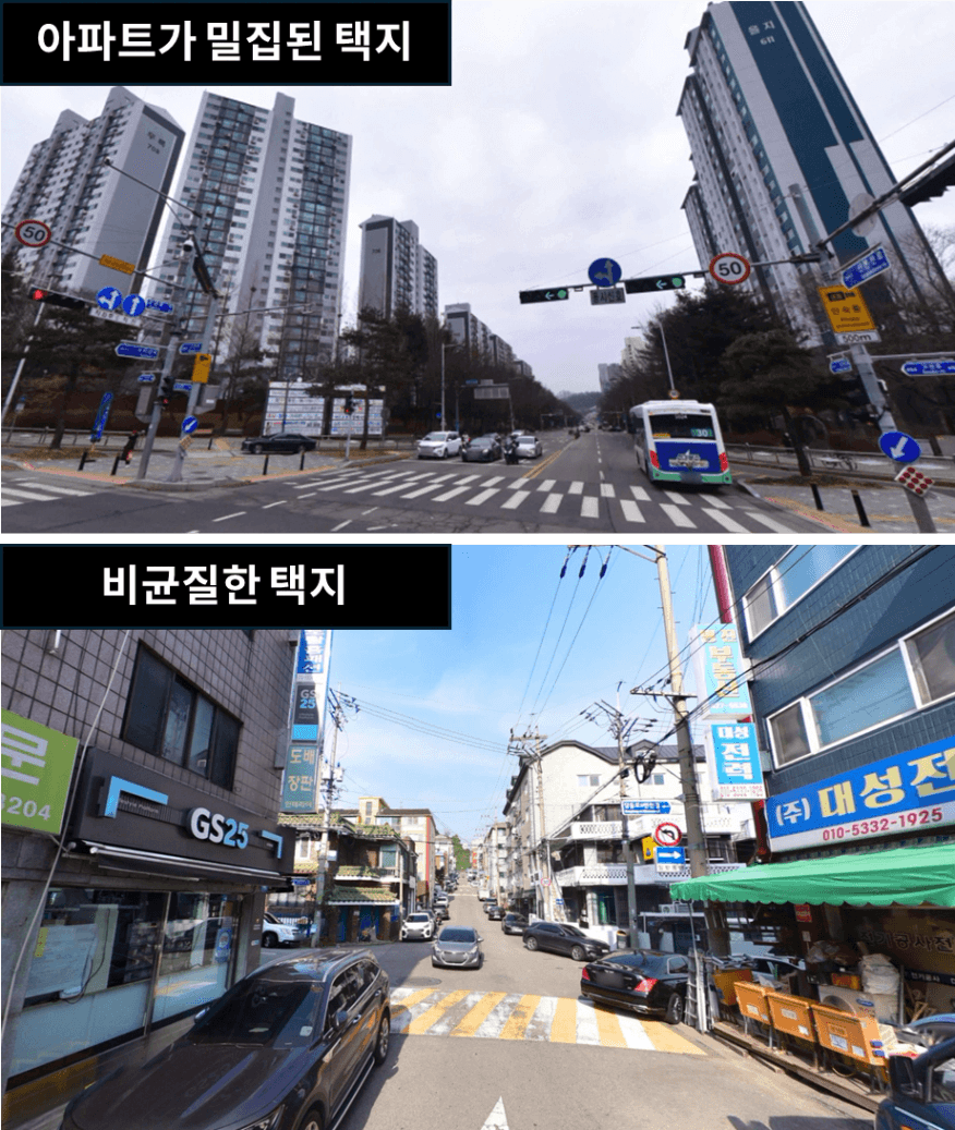 그리고 택지의 연식과 실제 위치(교통입지, 물리적 위치)를
