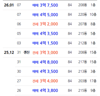 하지만 2월의 거래 내역을 보면 4억대 집도 있지만 3억 6700집도 있다.