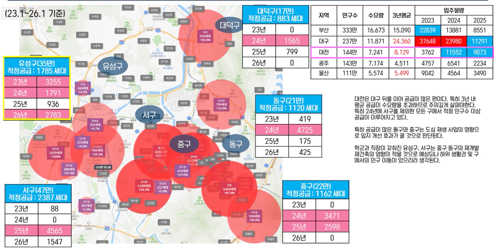 25년에는 공급이 줄어드는 대구에 있느라 대전의 공급량을 전혀 가늠하지 못하고 있었다.