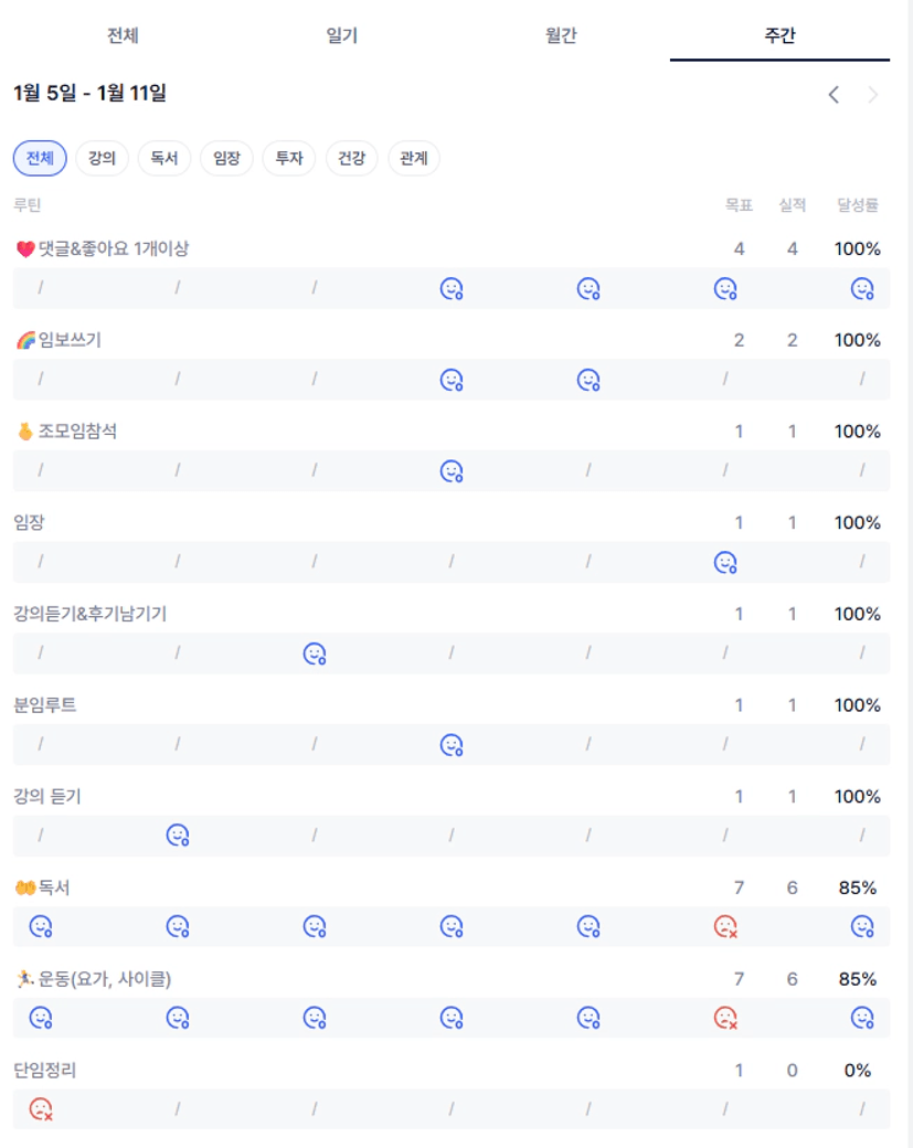 이렇게 주간으로 보니깐 좀.. 많이 부족한 듯 한 느낌이다.