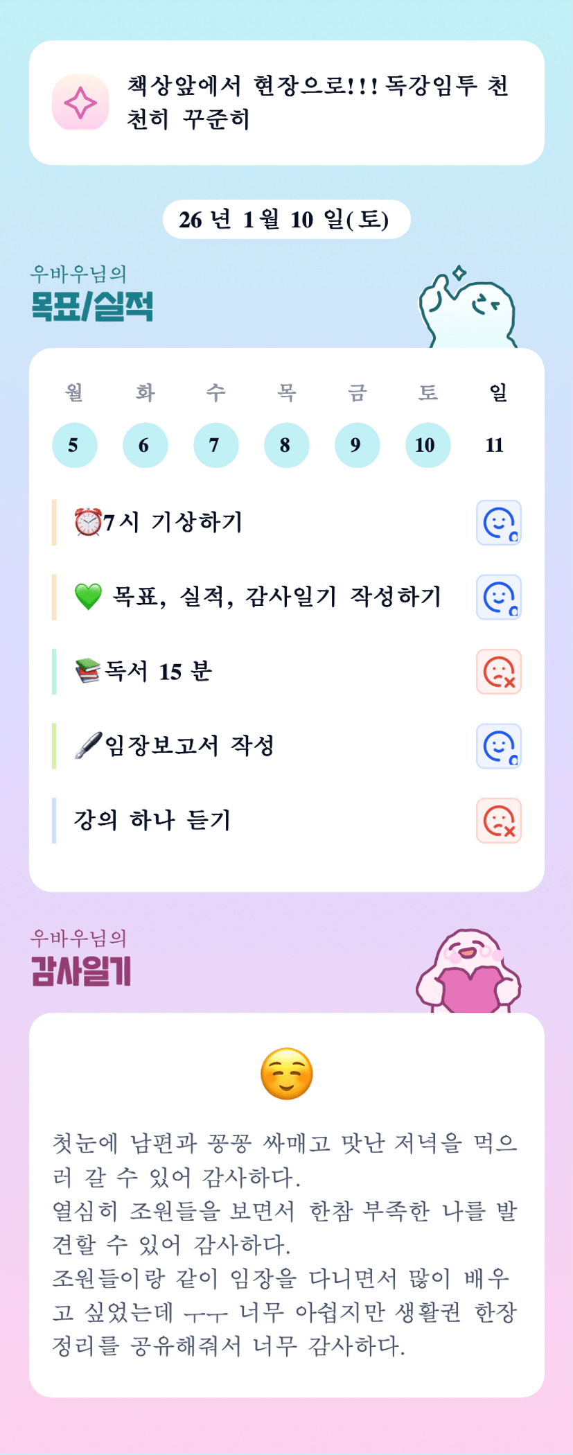 우바우님 절대 부족하지 않습니다!! :) 오늘 하루도 고생 많으셨어요!!