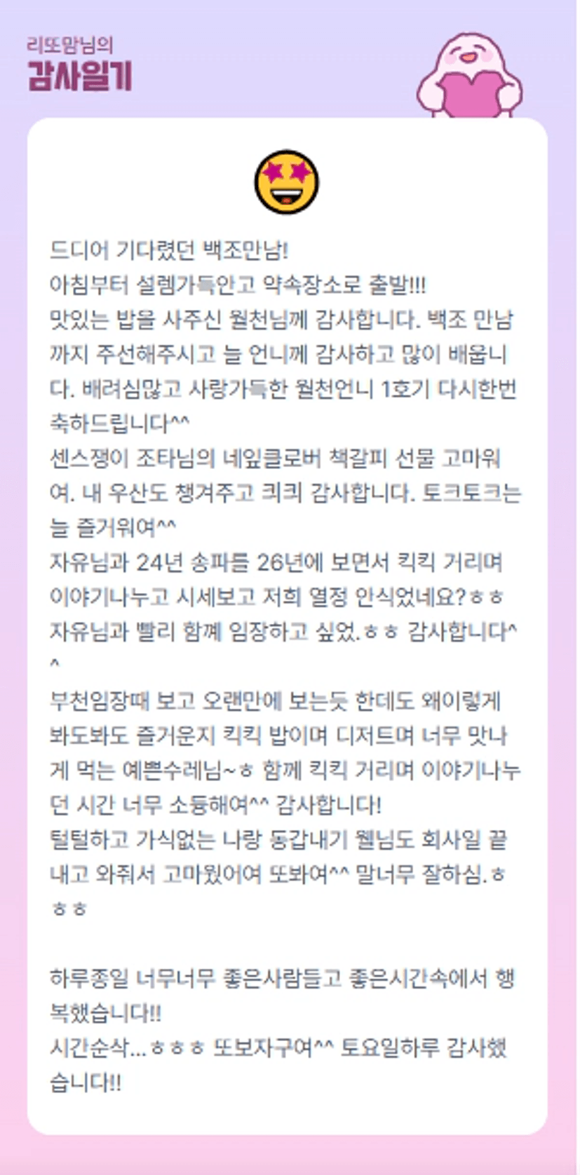 넘 행복했던 시간이었다요 토크토크는 해도 해도 부족함 우리 곧 또 만나용 ^^