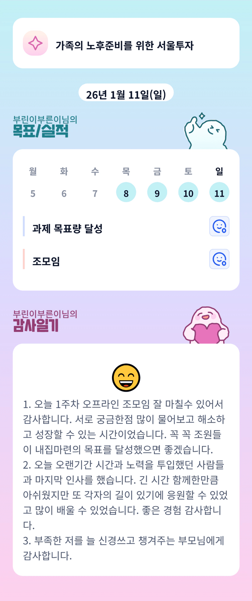 2️⃣ 1주차 목실감 작성하며 어땠는지 소감도 써보기 ✍🏻
