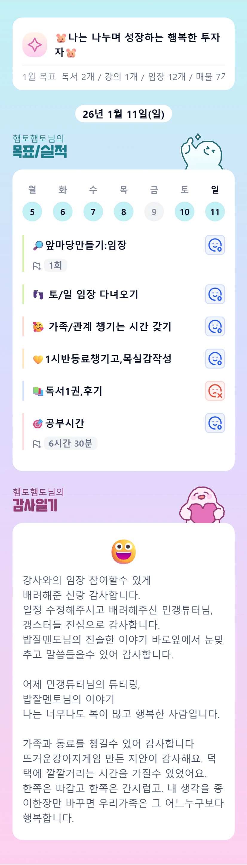 ํํ ๋ ์ฃผ๋ง๋์ ํ๋จ๊ณ ๋ ์ฑ์ฅํ์ จ์๊ฑฐ๋ผ ๋ฏฟ์ต๋๋ค~!!!