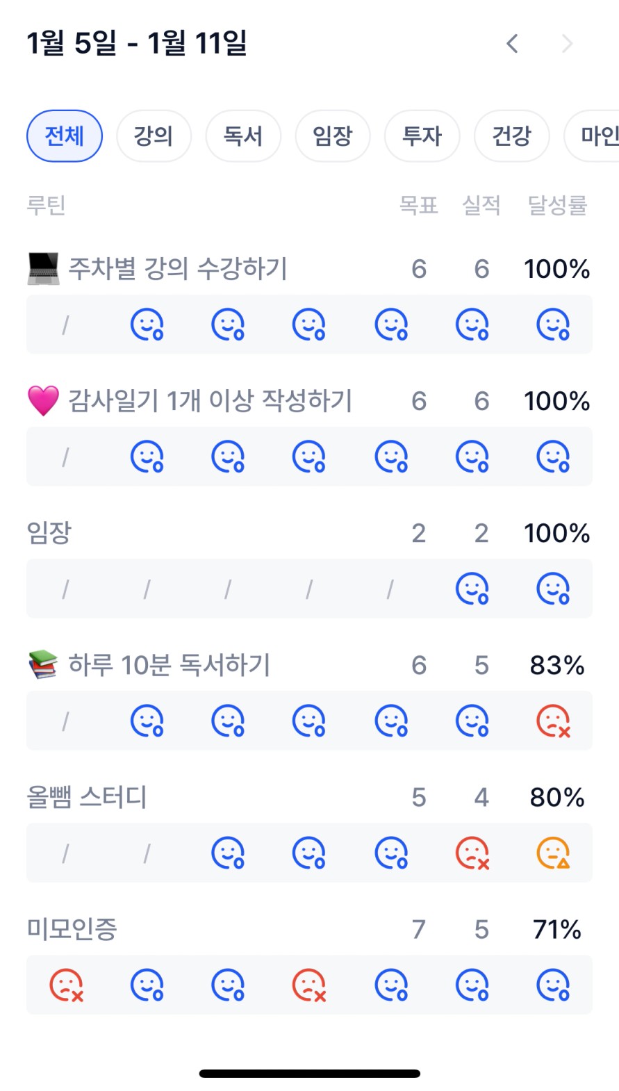 ์ด๋ฒ์ฃผ๋ถํฐ ๋ชฉ์ค๊ฐ์ ์งํฌ๊ธฐ ๋ฏธ๋ชจ/์ฌ๋บํ์ฅ์ผ๋ก์ ์ ๋๋ก ํ๋ํ๊ธฐ ์ํด์ ์๋ก์ด ํญ๋ชฉ์ ์ถ๊ฐํ์ฌ ์ด๋ฒ์ฃผ๋ฅผ ์์ํ์๋ค.