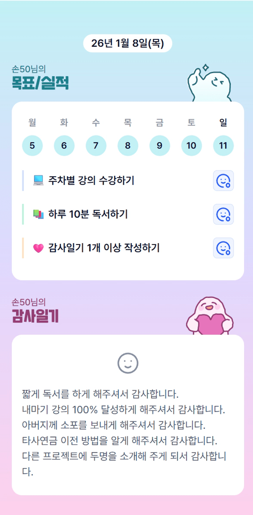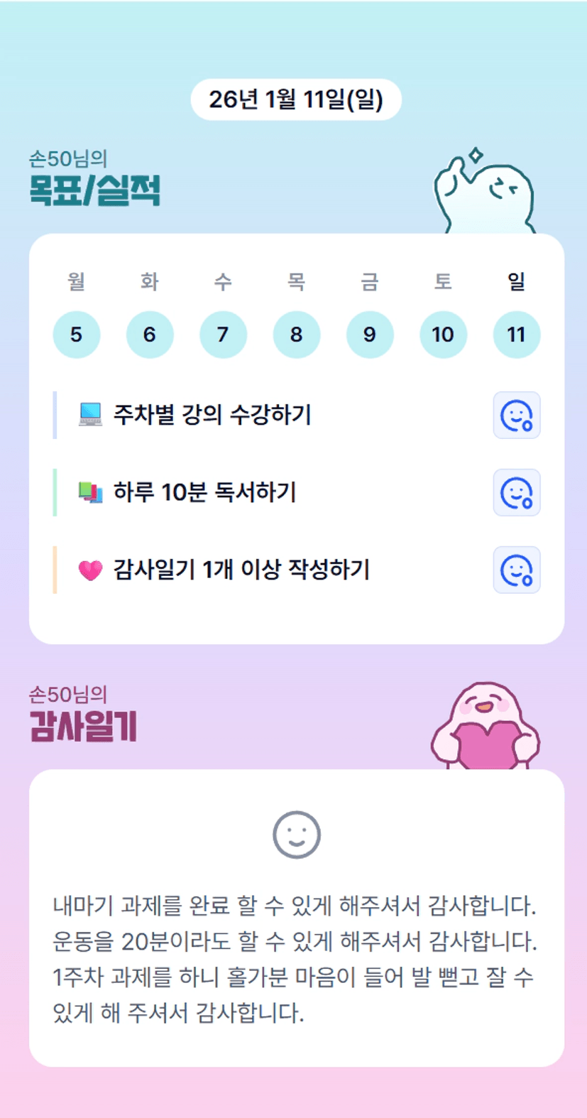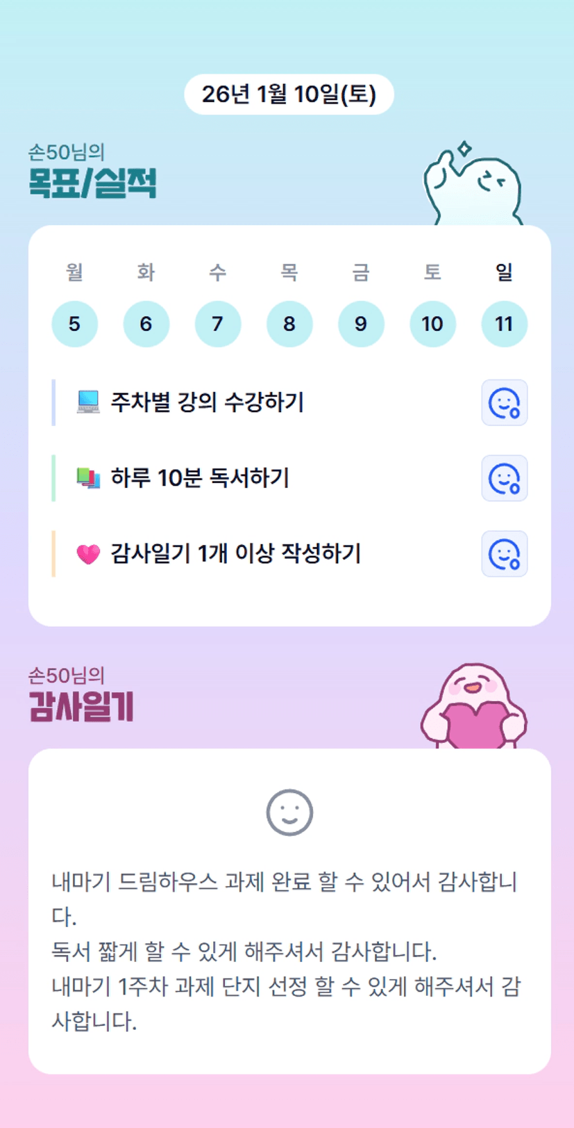 2️⃣ 1주차 목실감 작성하며 어땠는지 소감도 써보기 ✍🏻