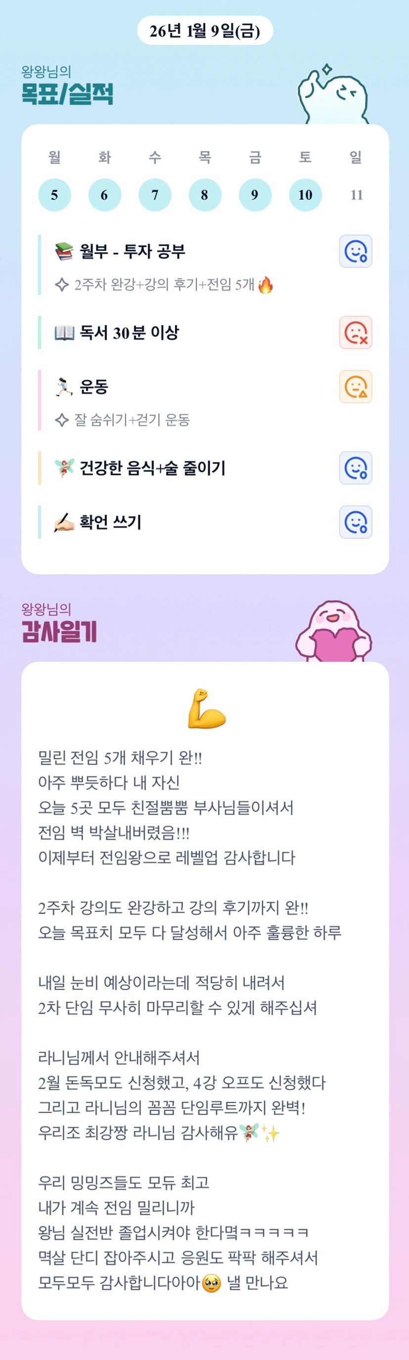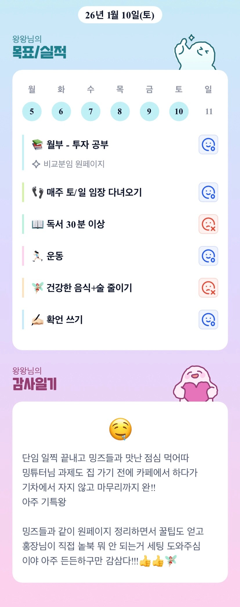 왕왕님의 활기찬 에너지로 우리 밍밍즈의 텐션 업업업!!! 늘 밝고 긍정적이신 왕님 최고십니다!!!