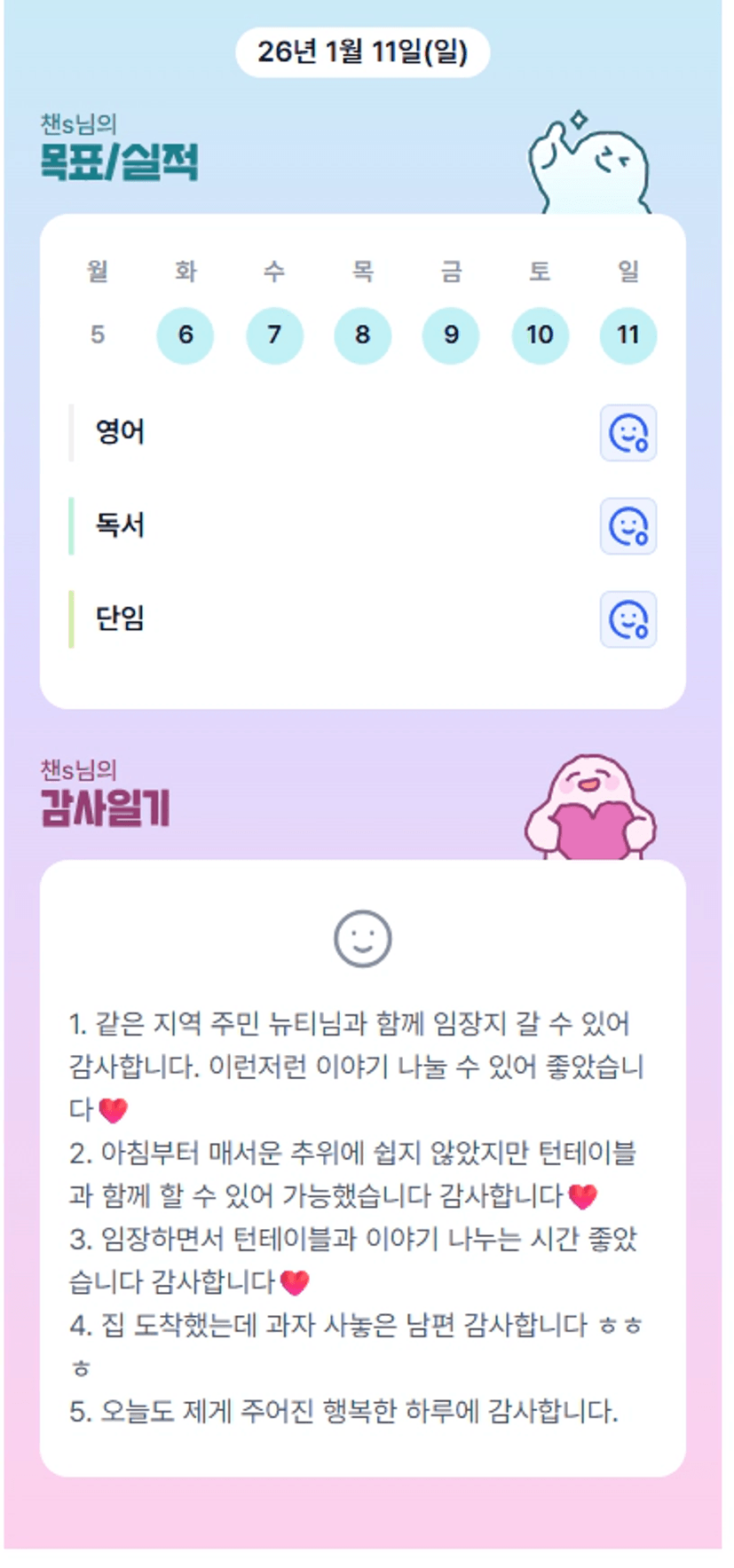 얘기 많이 해서 좋았어요 챈님! 감사했고, 수고 많으셨어요. 미션 수행할게요--!!