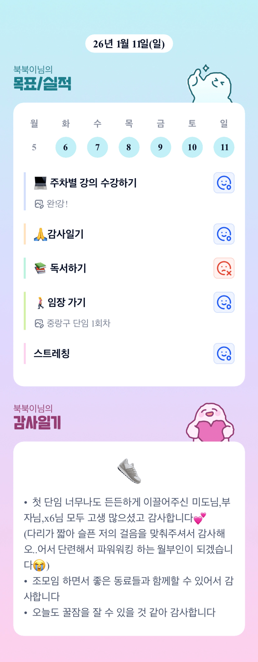 아이고 ㅠㅠ 북북이님 어제 단임도 조모임도 너무너무 고생 많으셨어요♡