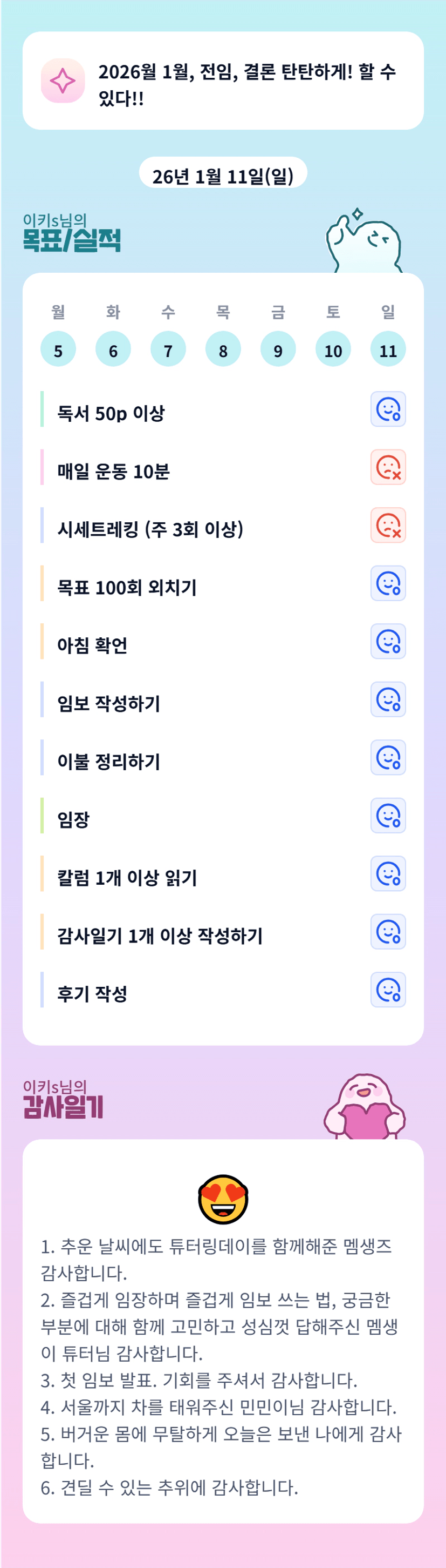 임보 발표까지~~!!! 고생많으셨습니다. ㅎㅎ 여느 때와는 다른 느낌의 감사 일기네요.