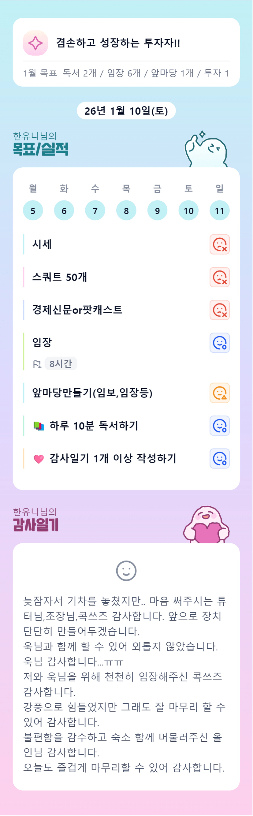 유니님 단임 따라잡으며 오시느라 넘 고생 많으셨어요! 함꼐해서 즐거운 튜데였습니다 ㅎㅎ
