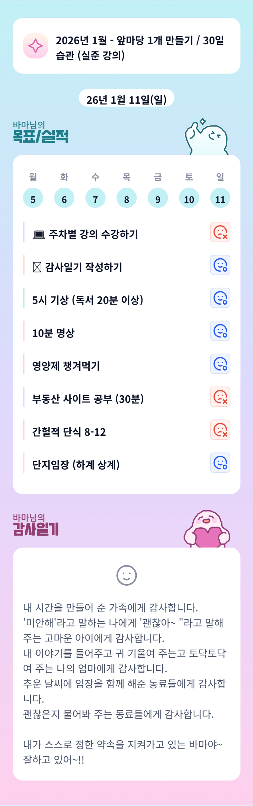 너무 잘 하고 계시네요!! 바마님 이번 한 주도 화이팅 하세요!!!! 💪💪💪