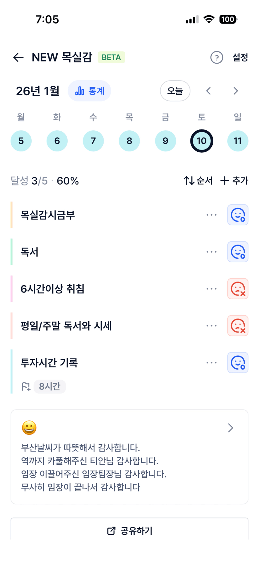 유삐 조장님 지난 주도 개강하고 정신 없으셨을텐데 고생 많으셨습니다😊 이번 주도 활기차게 화이팅입니다!☺️