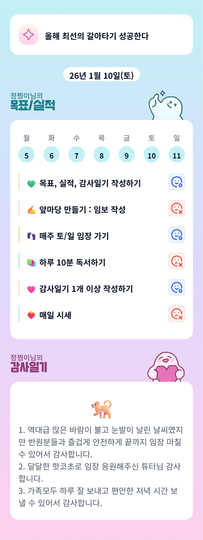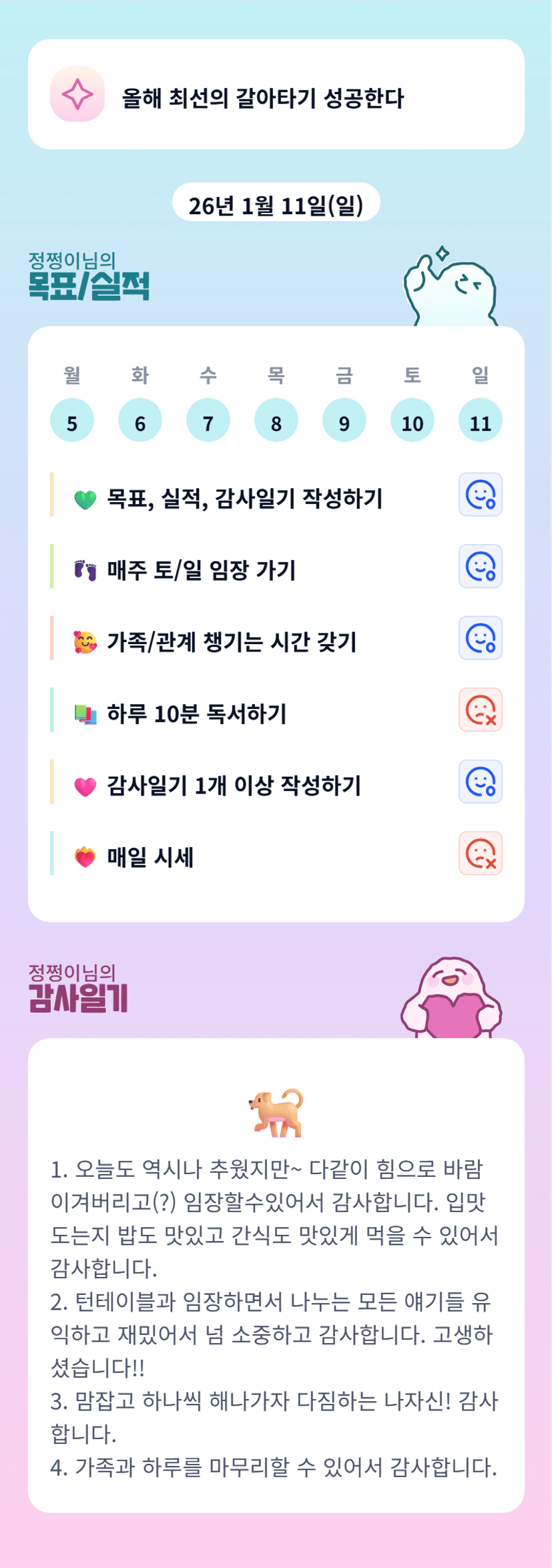 쩡이님 덕분에 흔들리던 마음에 중심이 생겼어요. 고마워요 쩡이님!