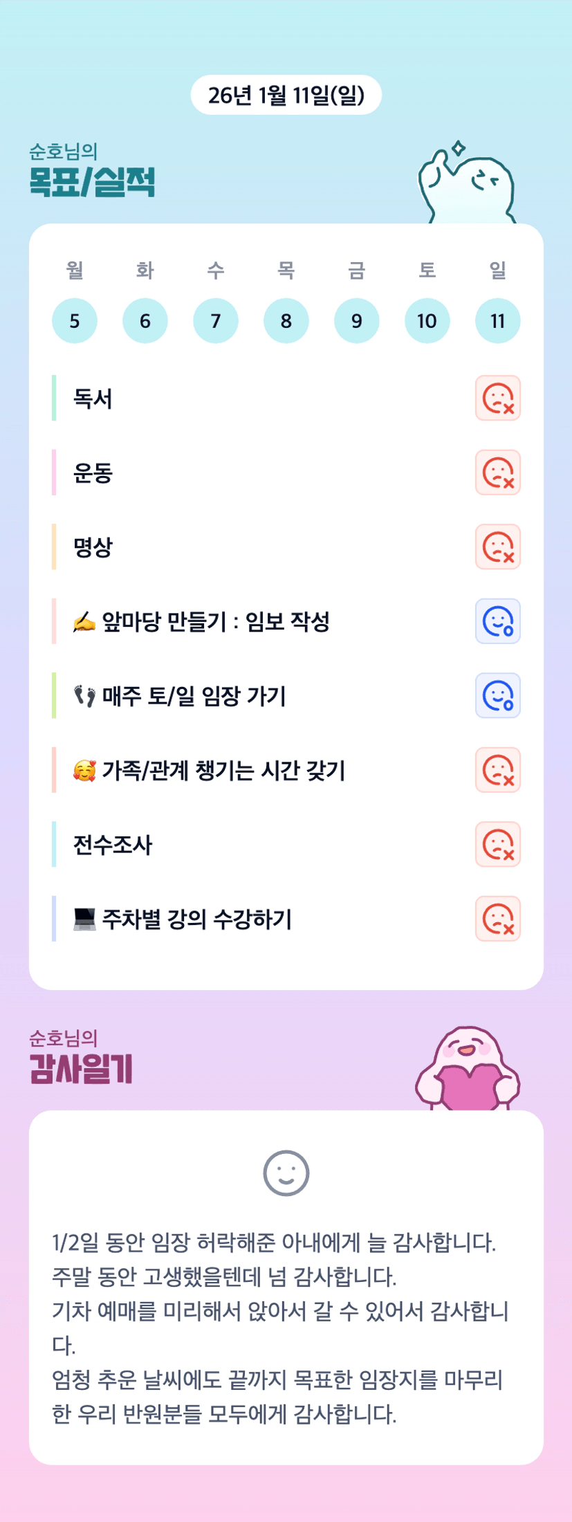 순호 조장님 여전히 열심히 임장하고 계시군요~ 추운 날씨에 건강 챙기시면서 월학 화이팅입니다!😍