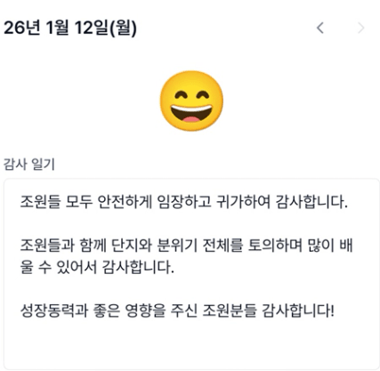 평소에도 받은부분에 대해서는 감사할줄 알고 표현하려고 노력하고 있습니다.