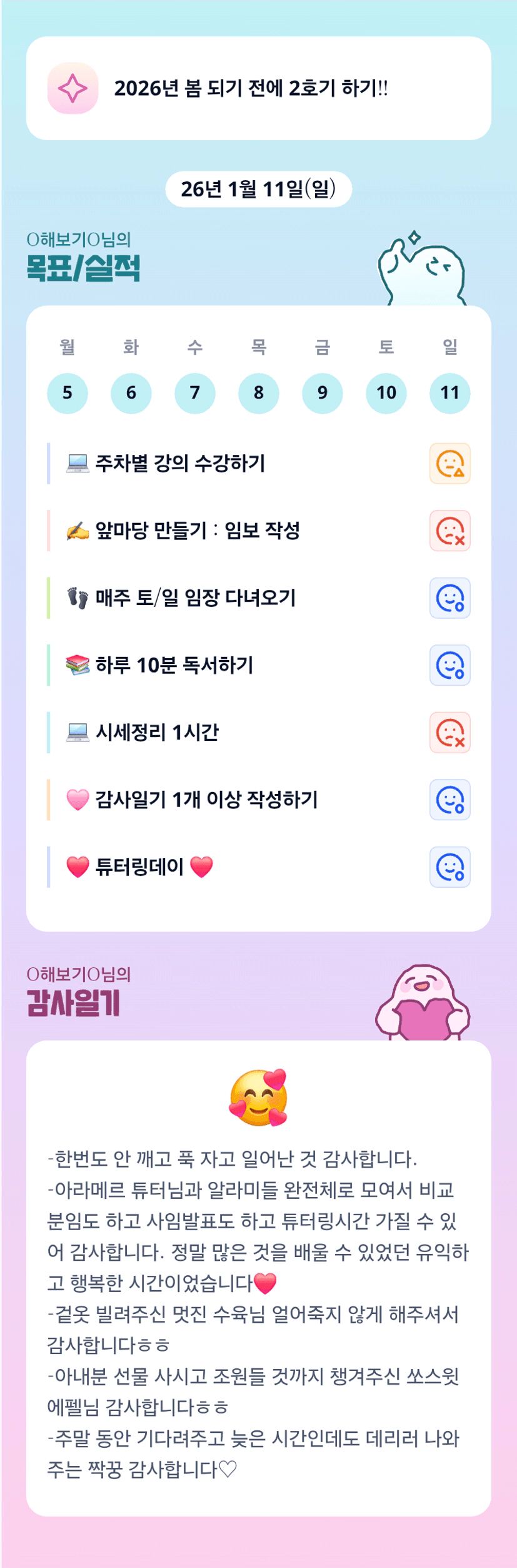 보기님 주말 멋진 튜터링데이 넘넘 애쓰셨어요 ^^