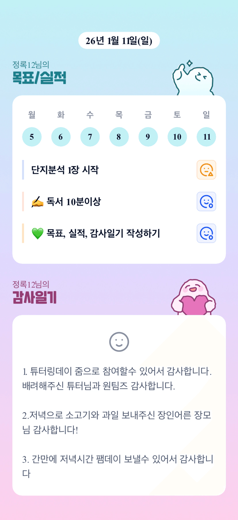 정록님 고생 많으셨습니다. 공부도 가족도 꼼꼼히 챙기는 정록님 최고! 사임 발표도 감사했어요.
