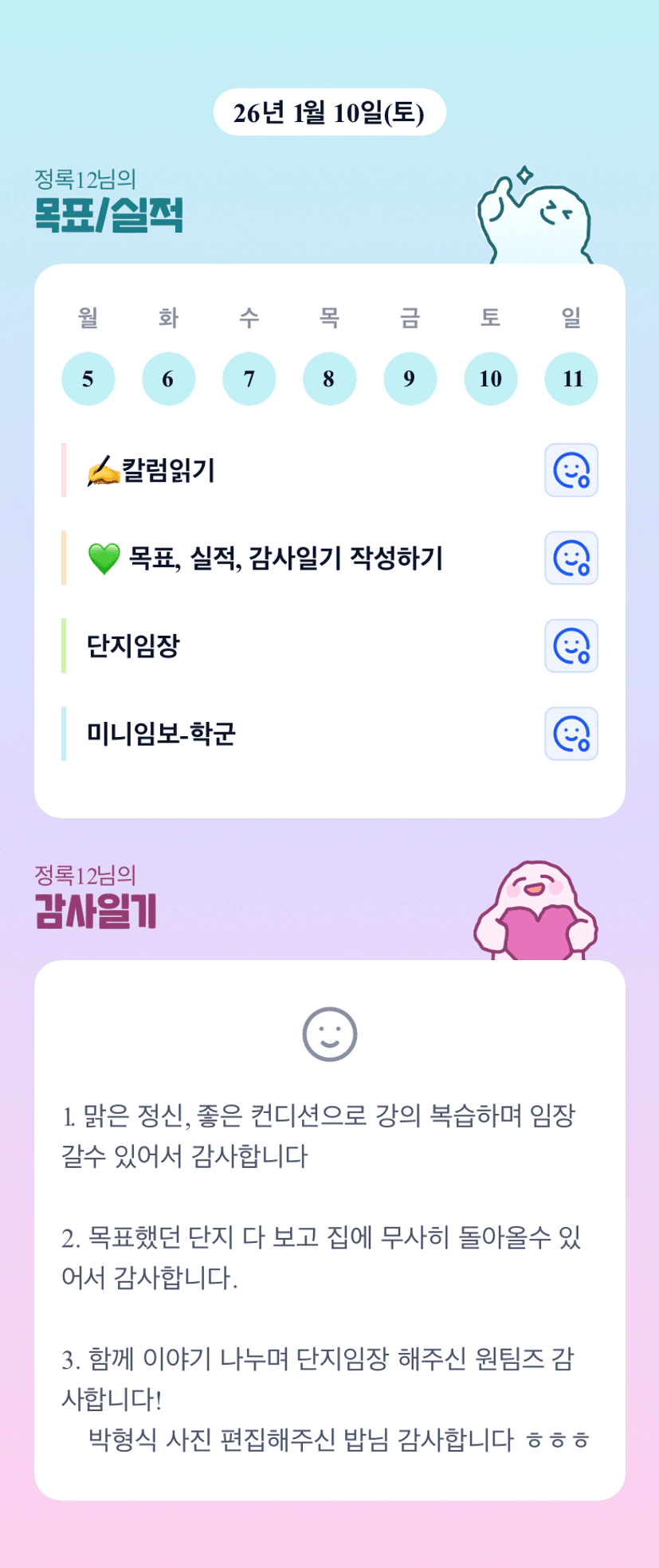정록님 1박2일 고생하셨습니다. 사임을 통해 정리하고 기록하는 정록님께 많이 배웠어요!👍 감사합니다! 😊🩷