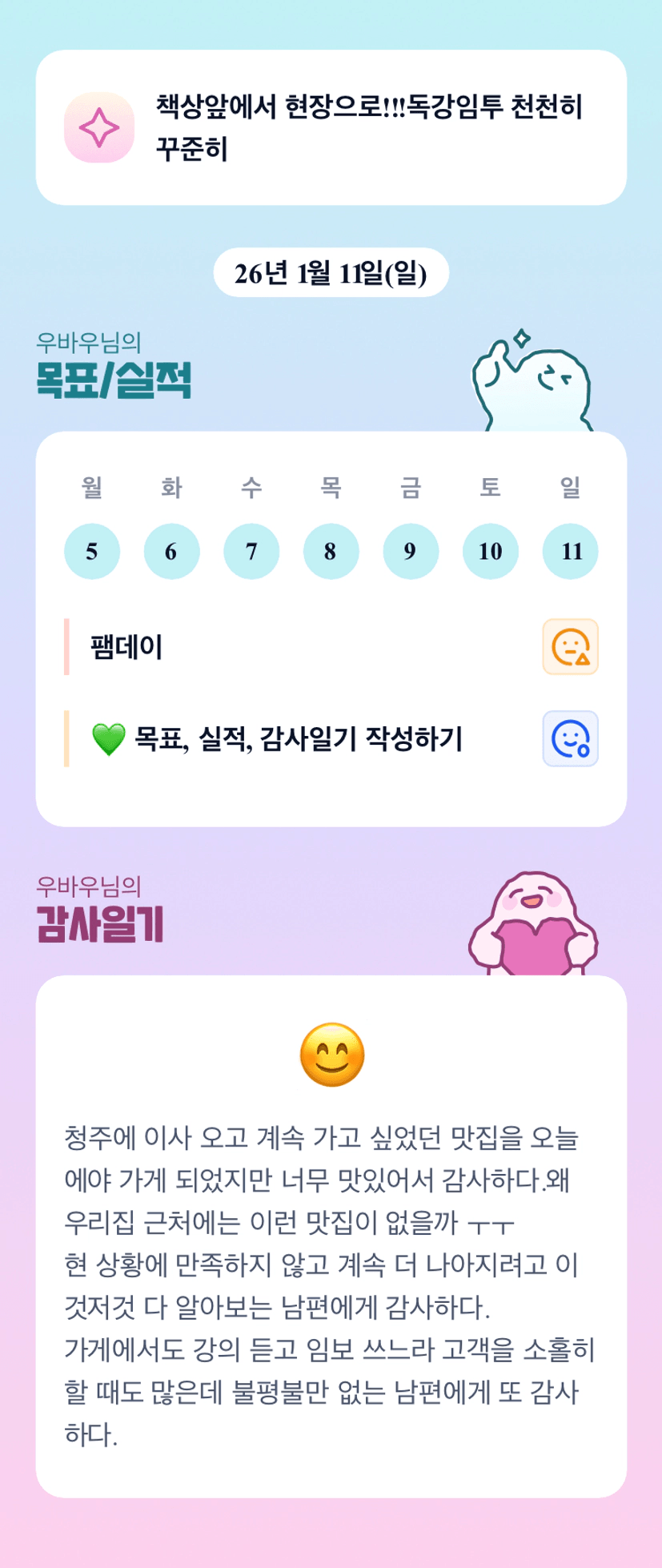 우바우님 지투기 잘하고 있는지 소식이 궁금하네요. 바쁠까봐 카톡도 못하구 궁금해도 꾸욱 참고 있다는. 추운데 임장 다닌다구 감기 걸리지 말구요!