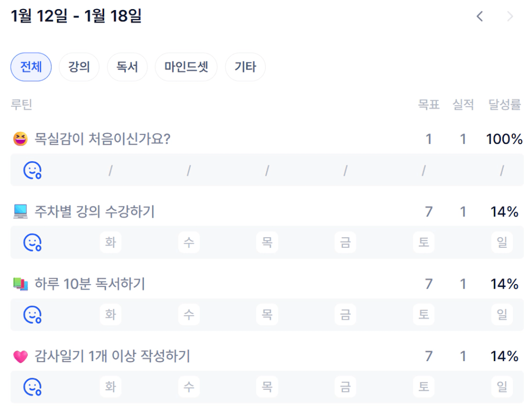 2️⃣ 1주차 목실감 작성하며 어땠는지 소감도 써보기 ✍🏻