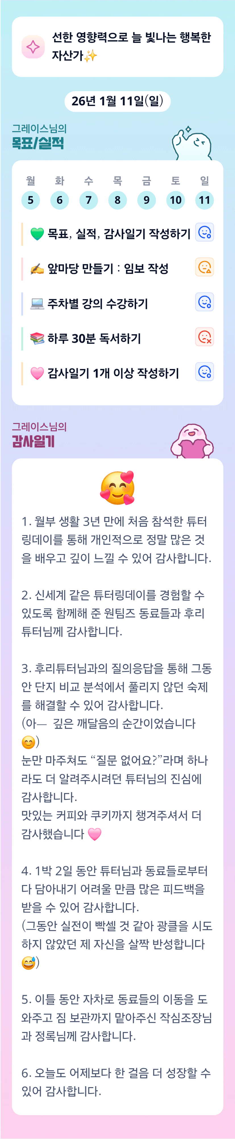 와.. 찐하게 튜터링데이 보내셨군요!!! 그레이스님, 늘 응원하고 있을게요~ 나중에 꼭 봬요!
