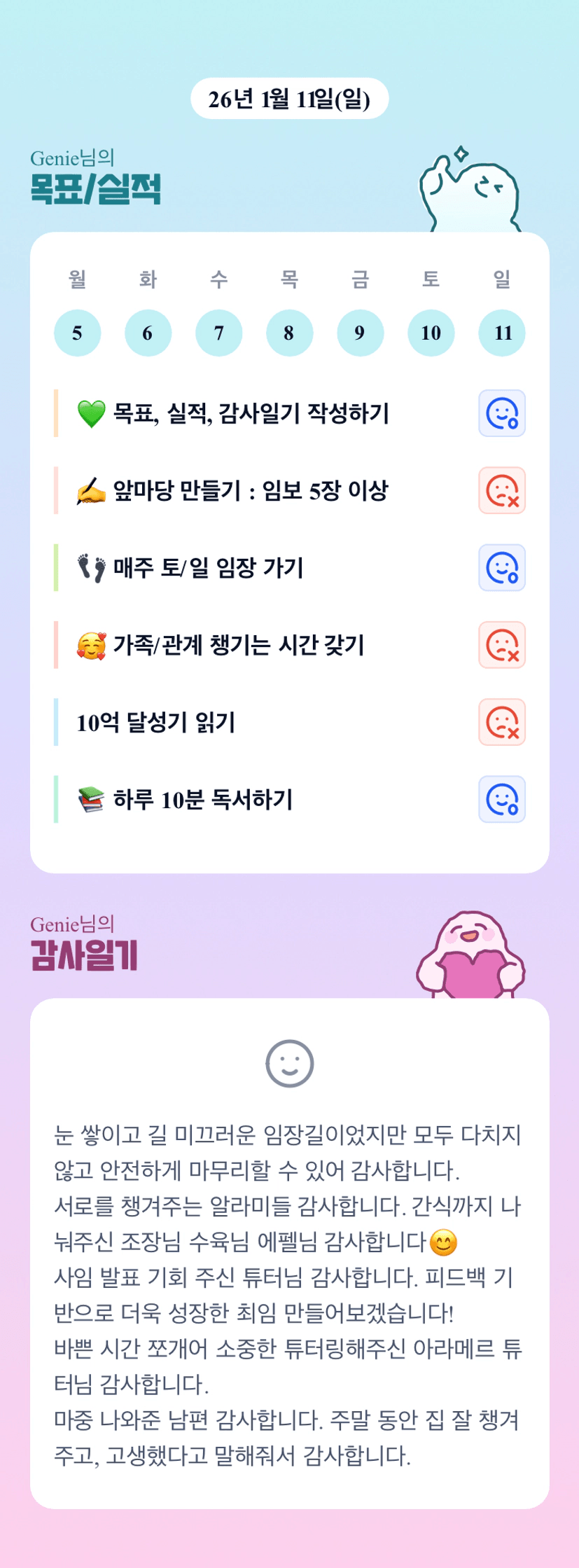 글을 보니 어제에 고생과 감사함이 느껴지네요😂 역시 잘 하고계세요!!지니조장님~화이팅❤️