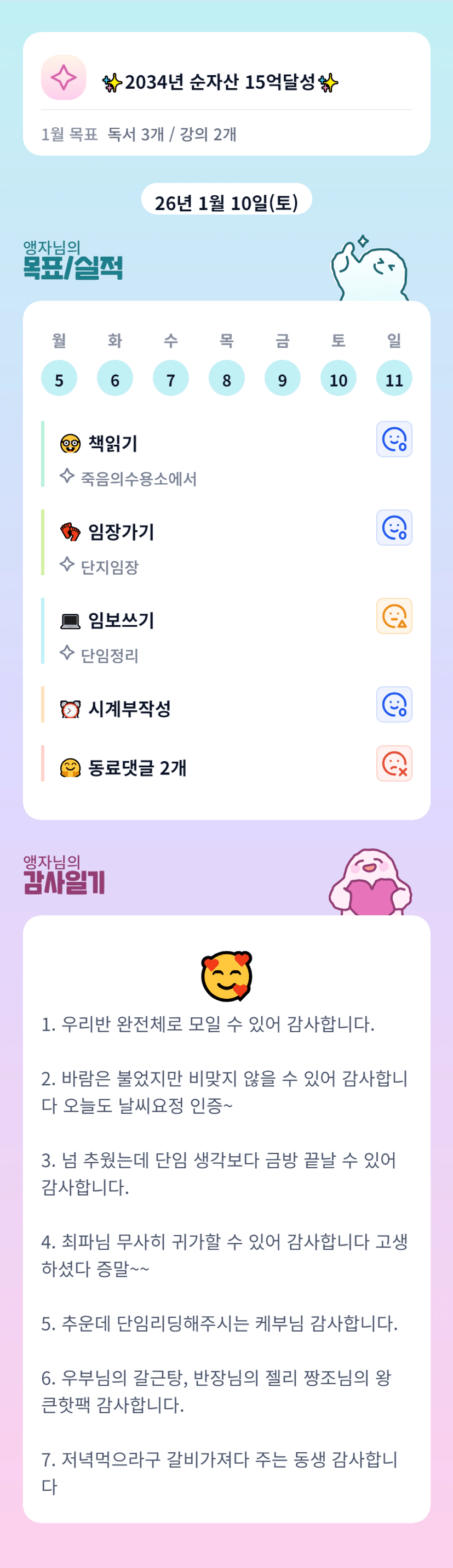 앵자님 오랜만에 봐서 넘 반가웠어요!! 월학 잘 마무리하시구 성장한 모습으로 또 뵈어요!