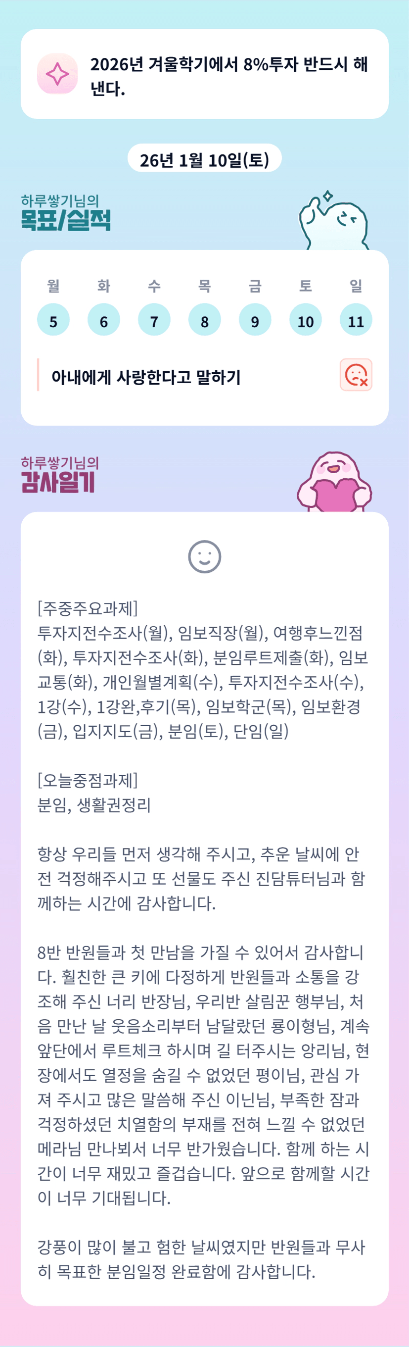 하루쌓기님, 이렇게 꾸준히 루틴을 하고 계시군요~ 응원드립니다.~!