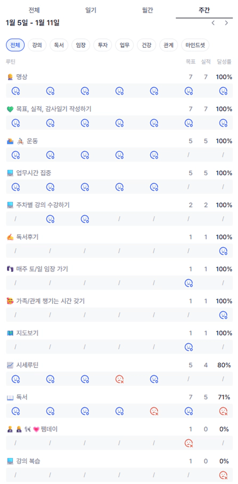 → 잘한점 : 독강임투인 중 독강인투는 루틴화해서 하려고 노력했음