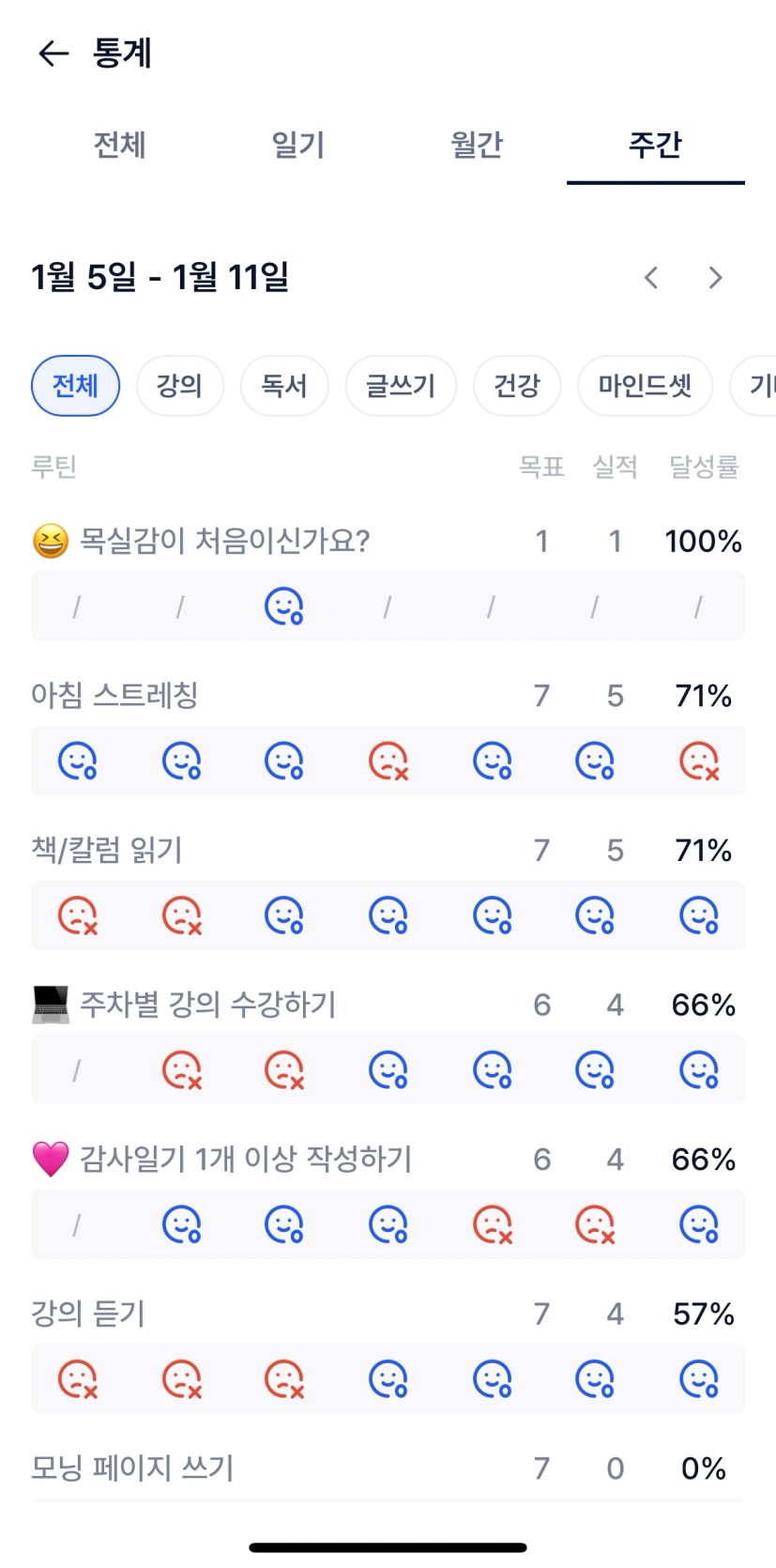 강의를 듣는것과 책/칼럼 읽는 습관을 만들기 어려운것 같다. 새로 시작하는 주에는 강의 수강과 과제를 틈틈이 할 수 있도록 노력해야겠다