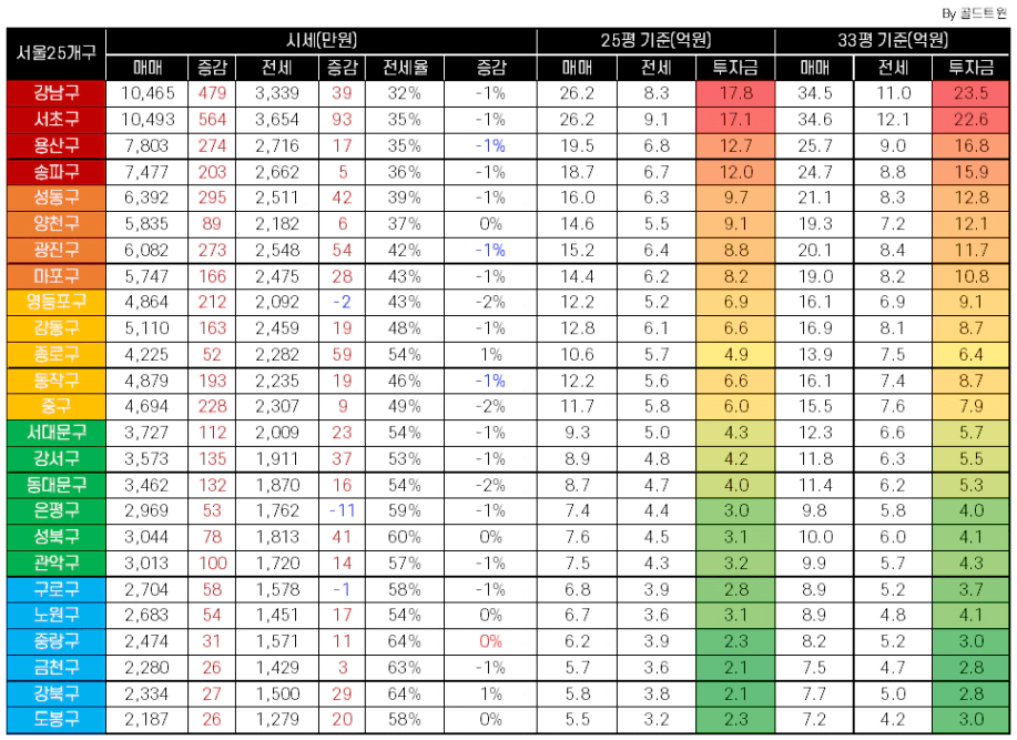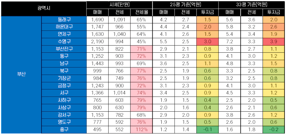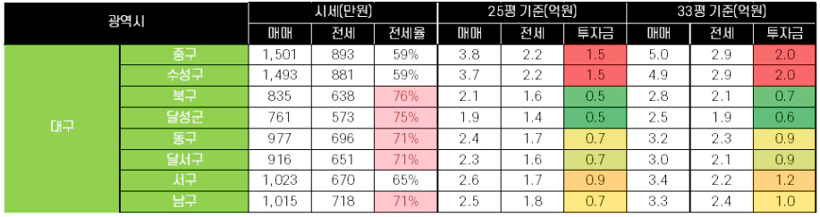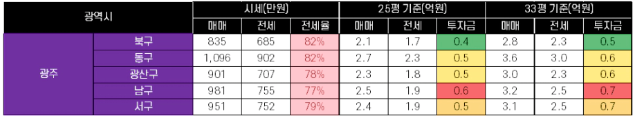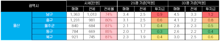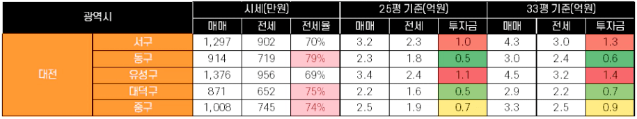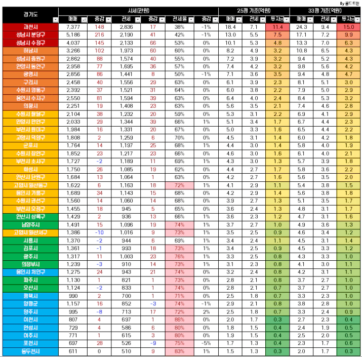 2. 서울 & 경기 & 광역시 시세 및 투자금