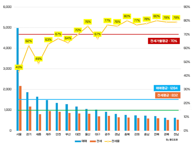전세가율 : 70% →70% (-%)