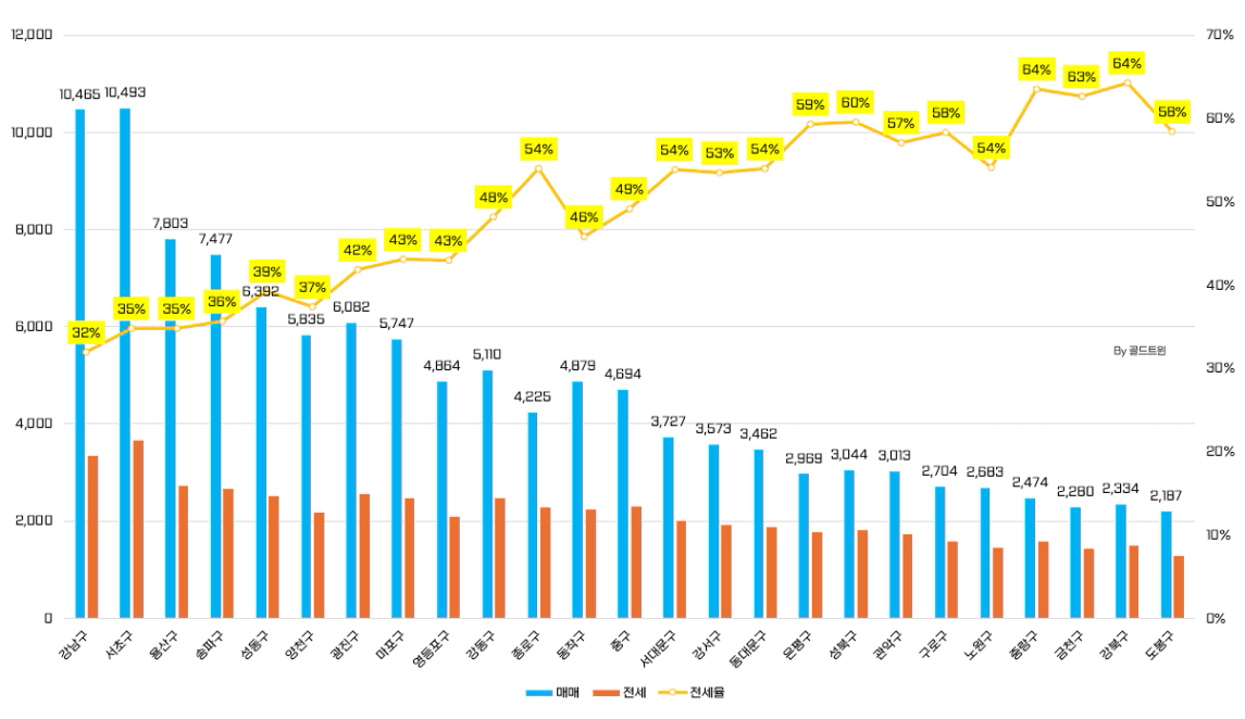 서울 전역의 매매/전세 상승을 막을 수 없는 모습입니다.