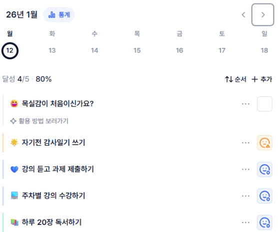 ✍🏻 인증사진을 찍을 때, 목실감을 완료하지 못한 날이 포함되어 있어도 괜찮아요.