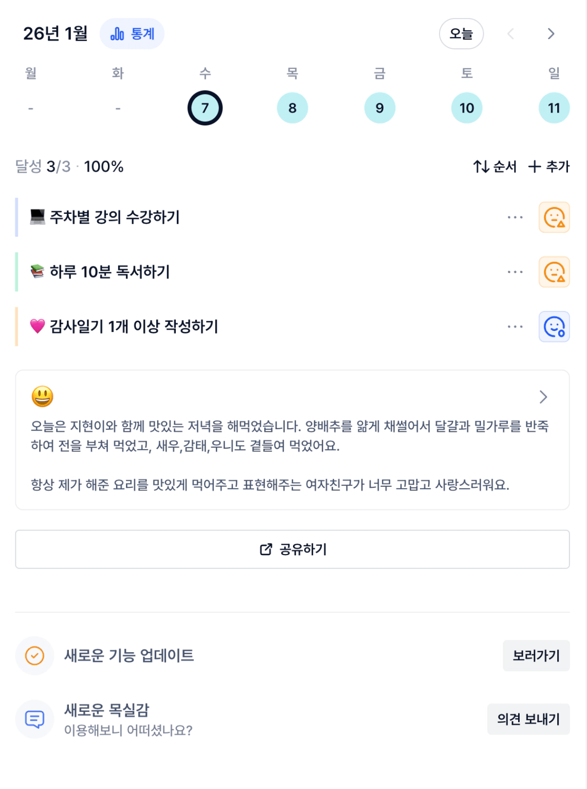 2️⃣ 1주차 목실감 작성하며 어땠는지 소감도 써보기 ✍🏻