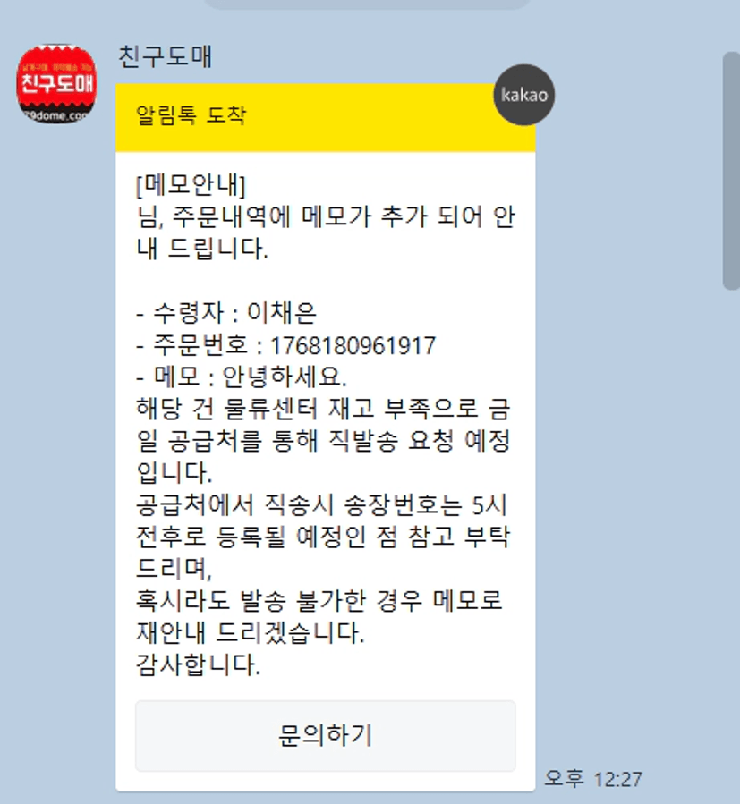 첫 주문이 들어와서 설렘 반 긴장감 반으로 원격으로 주문 처리 하는데 노트북이 버벅 거리다 위에 상품 송장이 밑에 상품까지 입력이 되어 둘 다 배송 중으로 바뀌었고 (위에는 지마켓 밑에는 쿠팡) 밑에 상품은 친구도매 에서