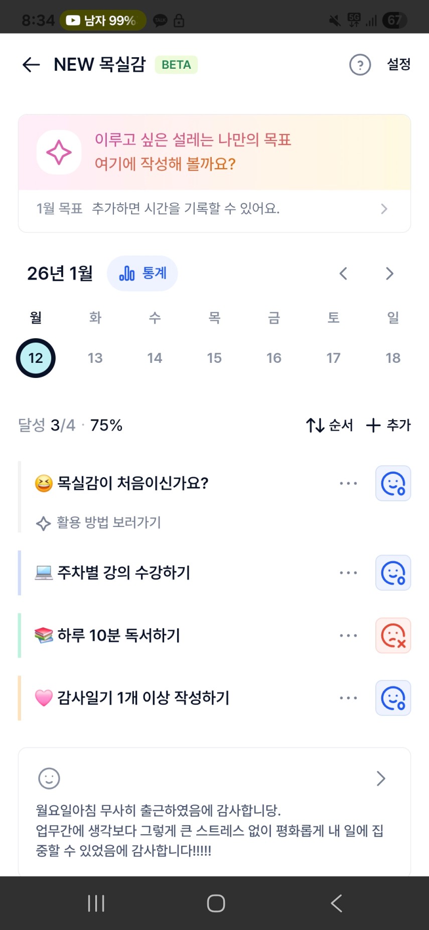 2️⃣ 1주차 목실감 작성하며 어땠는지 소감도 써보기 ✍🏻