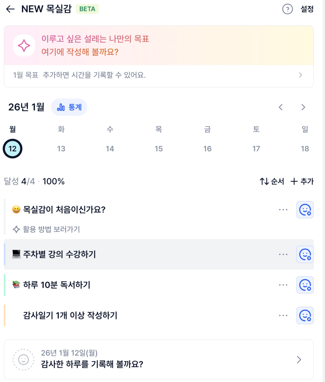 2️⃣ 1주차 목실감 작성하며 어땠는지 소감도 써보기 ✍🏻