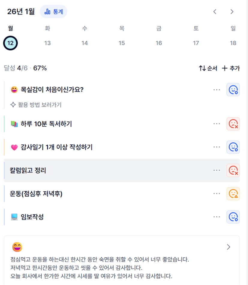 이번주는 목실감을 잘실천해보겠ㄷ다.