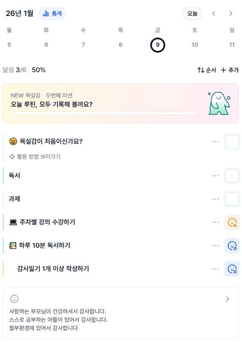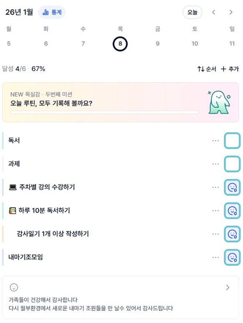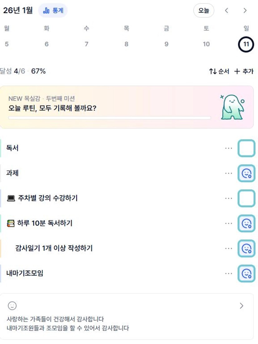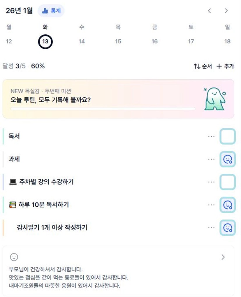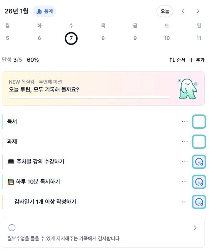 2️⃣ 1주차 목실감 작성하며 어땠는지 소감도 써보기