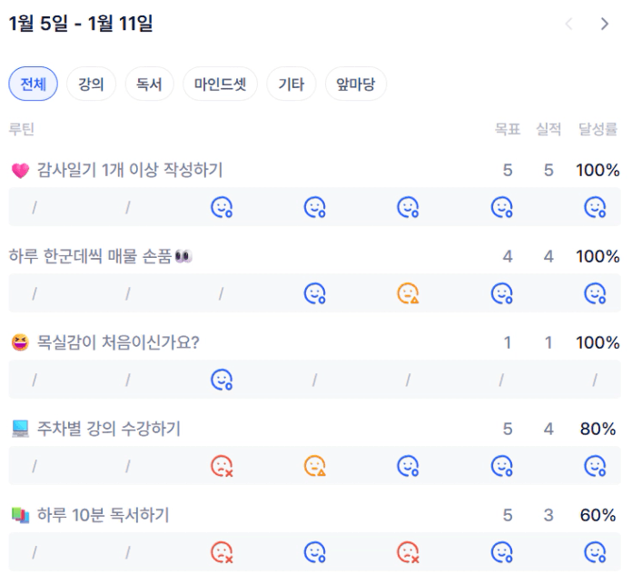 목실감 체크를 위해 조금이라도 더 강의듣고 공부하고 독서하고 감사한 마음을 가지려 노력할 수 있었던 것 같습니다