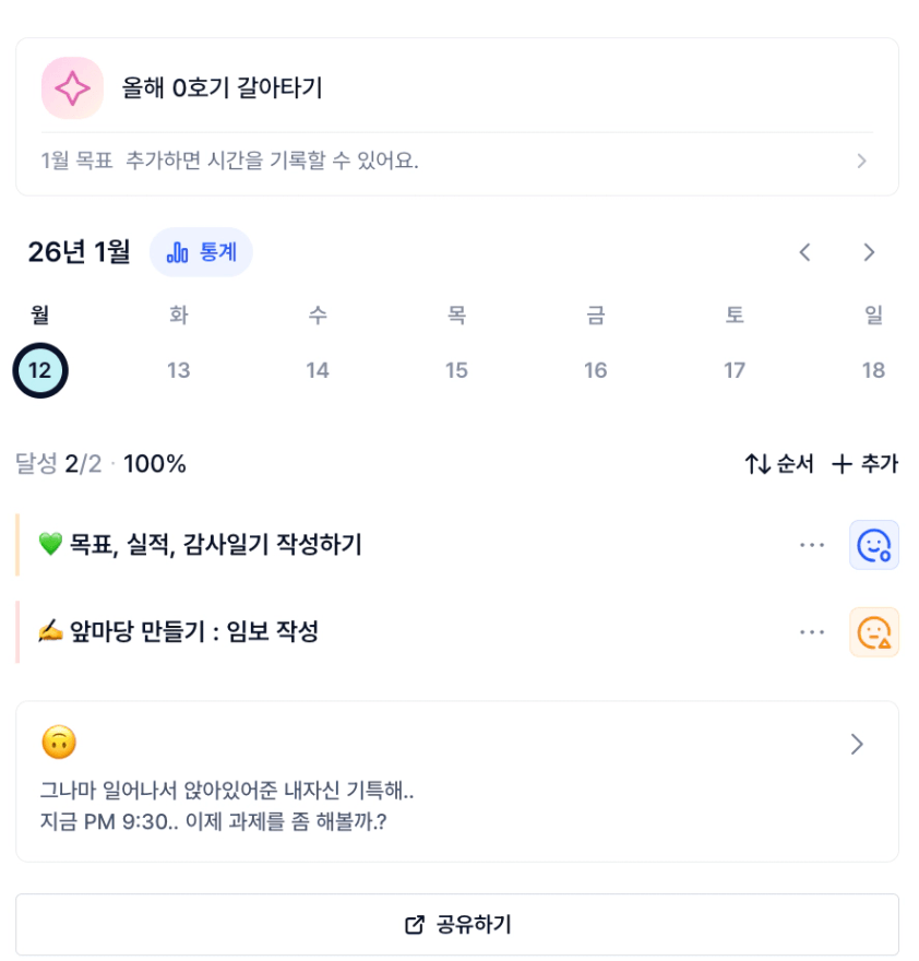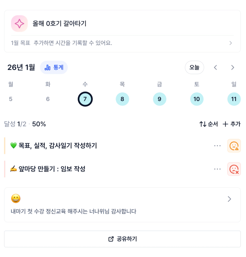 오랜만에 목실감을 써보니 26년 목표를 변경하며 얼른 루틴을 되찾아야겠다는 생각이 들었습니다..!