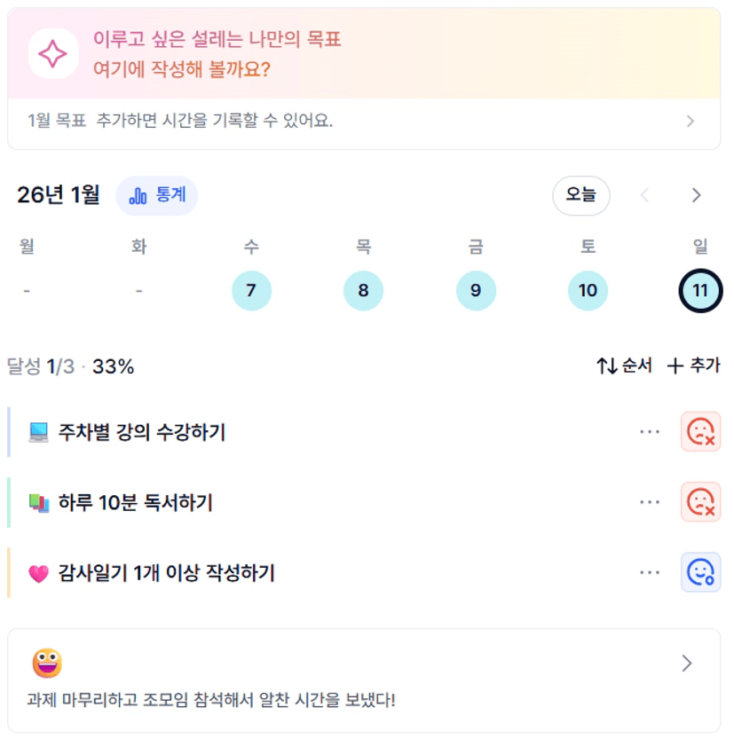 2️⃣ 1주차 목실감 작성하며 어땠는지 소감도 써보기 ✍🏻