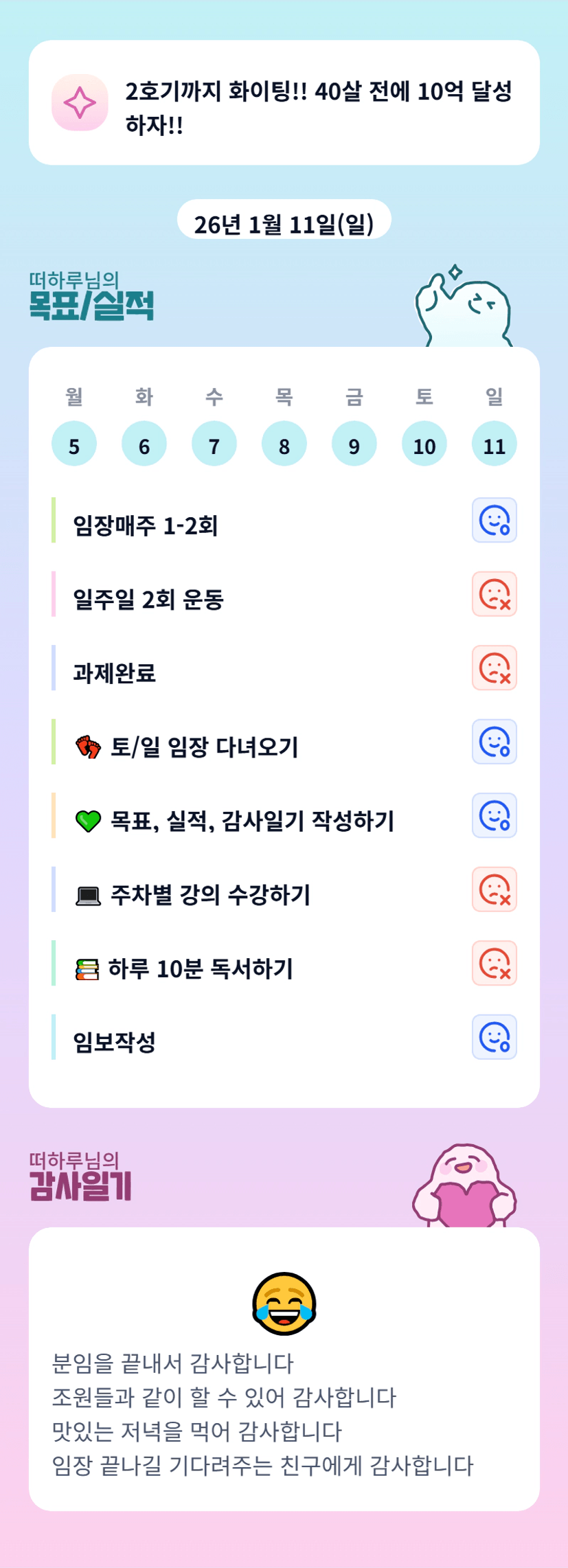 다음 날 부터 다시 새로운 마음으로 목실감 작성하기를 꼬옥 해주시기 바랍니다!