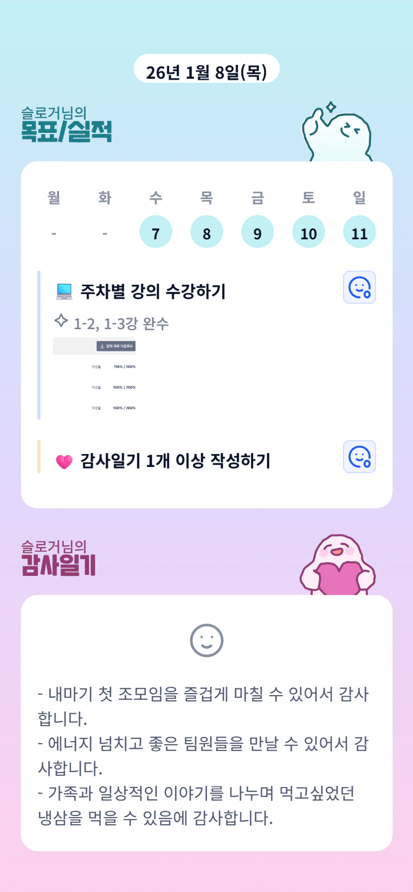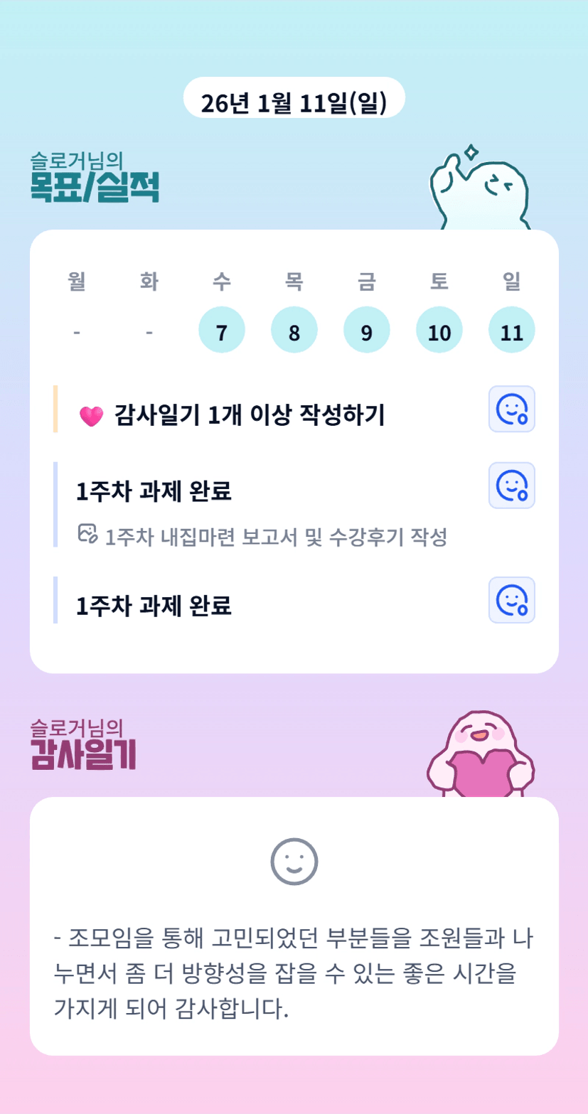 2️⃣ 1주차 목실감 작성하며 어땠는지 소감도 써보기 ✍🏻