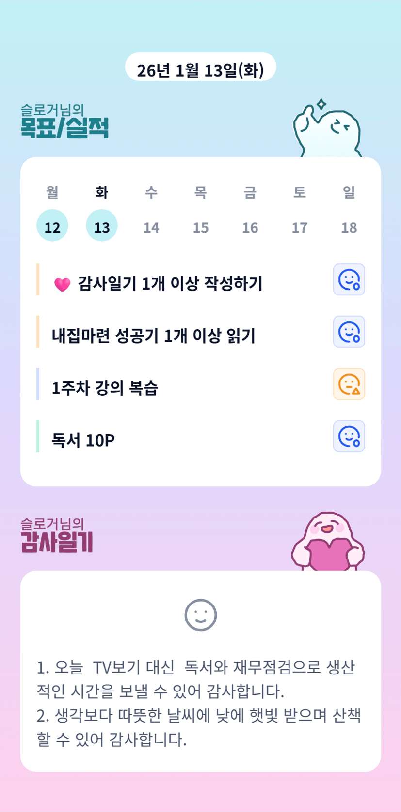 오늘 해야 할 일을 도장 깨기처럼 하나씩 해나 가며 성취감도 느낄 수 있었고, 내집마련이라는 목표도 더 명확해지고 있는 것 같다.