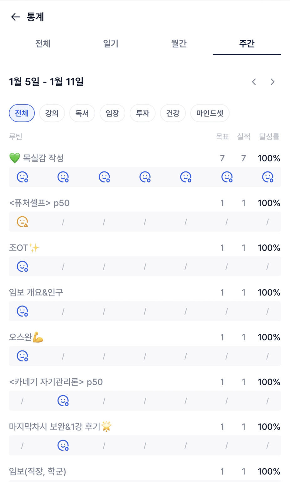 저의 경우 흐트러졌던 습관을 다시 목실감을 작성하면서 다잡아나가고 있는데요,